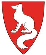 | Kommunevåpenet ble godkjent i 1987 og viser en sittende sølvrev mot rød bakgrunn. Motivet henspiller på pelsdyroppdretten som var en tradisjonsrik og utbredt næring i kommunen. Reven står også for dyreliv i skog og mark. |